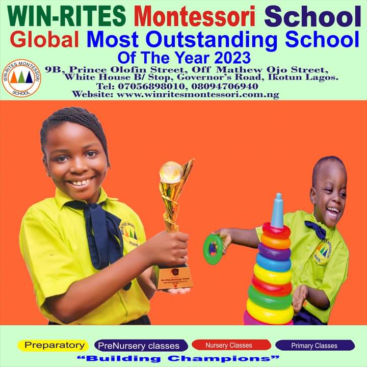 Address: No 9B, Prince Olofin Street, Off Mathew Ojo Street, White House Bus Stop, Off Governor’s Road, Ikotun, Lagos. Phone Number: 07056898010, 08175625915 Email: winritesschool@gamil.com Website: www.winritesmontessori.com.ng